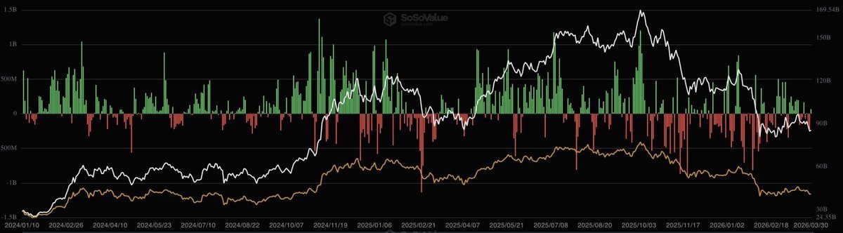 A pesar de la presión vendedora, el panorama institucional muestra señales de resistencia, ya que las salidas de capital de principios de 2026 se transformaron en una entrada neta acumulada de aproximadamente 1.500 millones de dólares durante marzo.