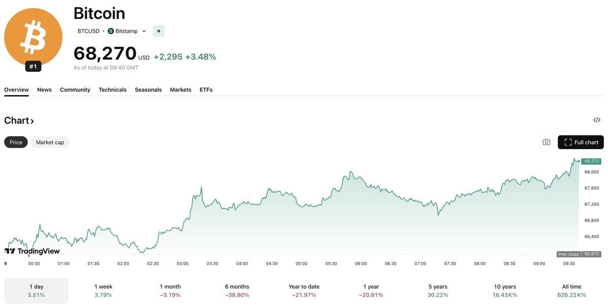 Mientras tanto, el mercado general se mantiene estable, con el precio de Bitcoin orbitando los 68.200 dólares.
