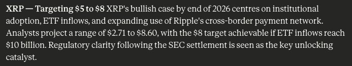 Otros catalizadores incluyen la exposición institucional mediante los ETFs de XRP en EE. UU. y la posibilidad de una regulación más clara si el proyecto de ley CLARITY avanza en el Congreso.