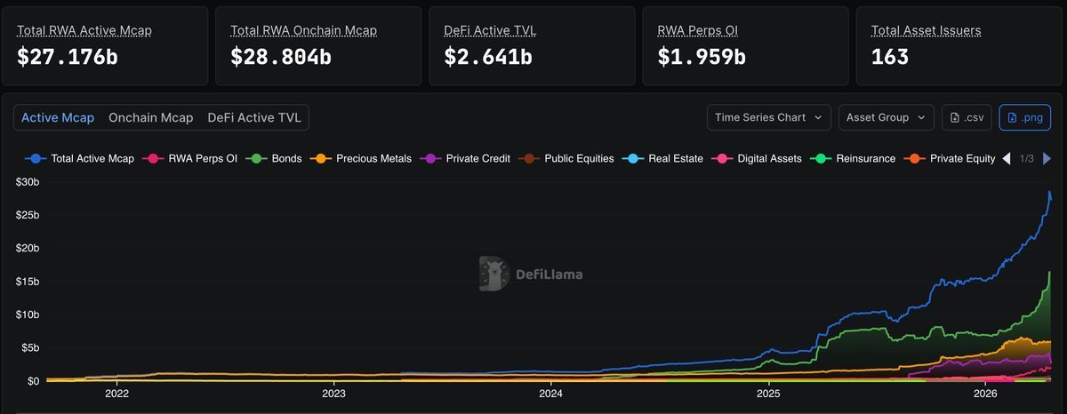 El mercado general de activos del mundo real (RWA) tokenizados supera ya los 29,000 millones de dólares en blockchains públicas, con un crecimiento superior al 10% en los últimos 30 días, manteniendo una tendencia ascendente constante.