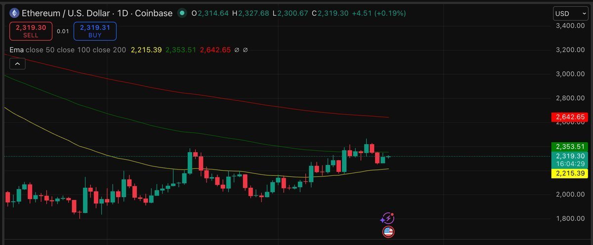 ETH ha retrocedido un 2.11% en los últimos siete días, cayendo desde los $2.450 hasta los niveles actuales, un punto psicológico que ahora actúa como resistencia. El precio se encuentra atrapado en una banda de consolidación que se ha estrechado recientemente.