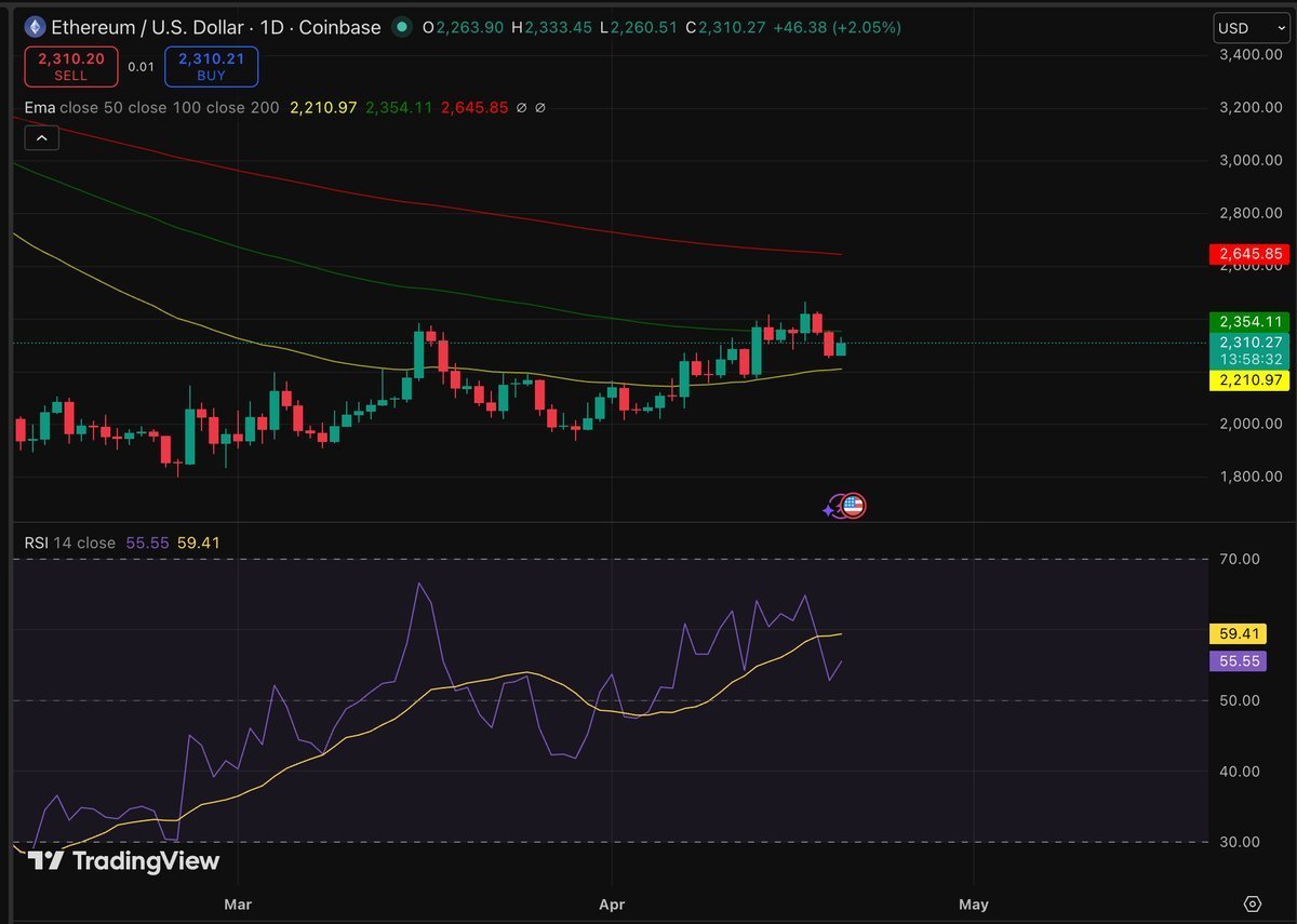 Actualmente, el precio de Ethereum se sitúa por debajo de los $2.300, atrapado dentro de un patrón de triángulo simétrico con resistencias clave localizadas entre los $2.200 y $2.400. El RSI se mantiene en niveles neutrales y la volatilidad registra un 5.21%.