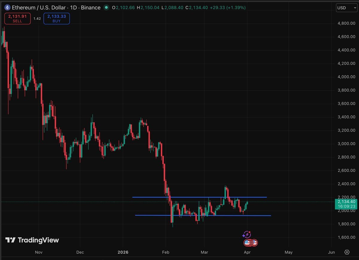 El precio de Ethereum se cotiza a $2,137.48 hoy, mientras que ha cerrado el mes de marzo con un incremento del 7%, superando con creces el modesto avance del 1% de Bitcoin y logrando sobrevivir a una racha negativa de seis meses.